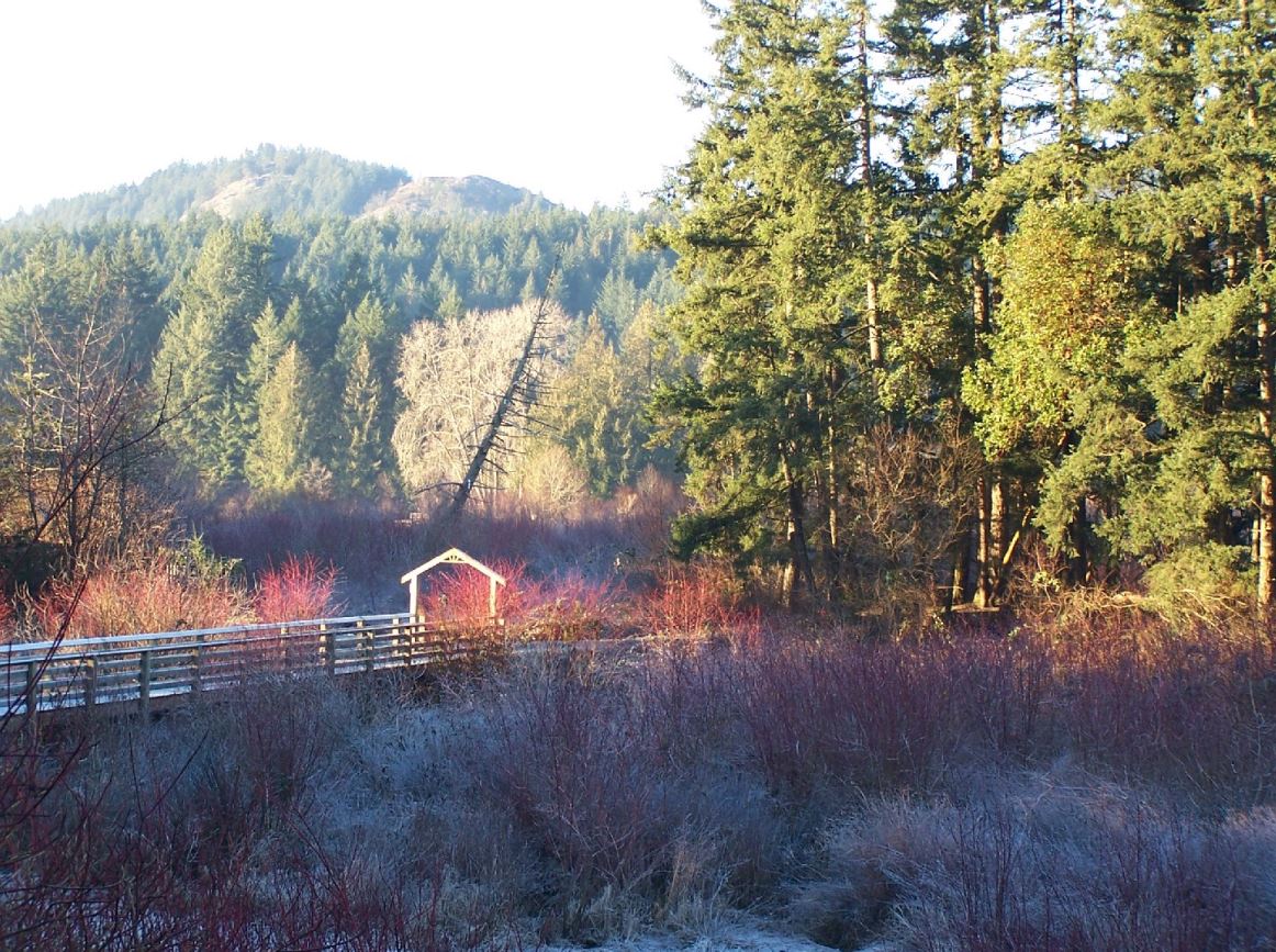 The Ed Nixon Trail offers a tranquil 4.5-kilometer route along the southwestern curve of Langford Lake. As one of the City of Langford’s largest trails, it runs from City Centre Park to where Goldstream meets the Trans-Canada highway in the west. Ed Nixon Trail connects to the Leigh Road Trail from Goldstream Avenue and to Happy Valley across the Cy Jenkins Trail.This path features boardwalks over marshy areas, providing excellent bird-watching opportunities. The trail leads to the floating viewing platform, children’s playground, and public washrooms at Langford Lake.